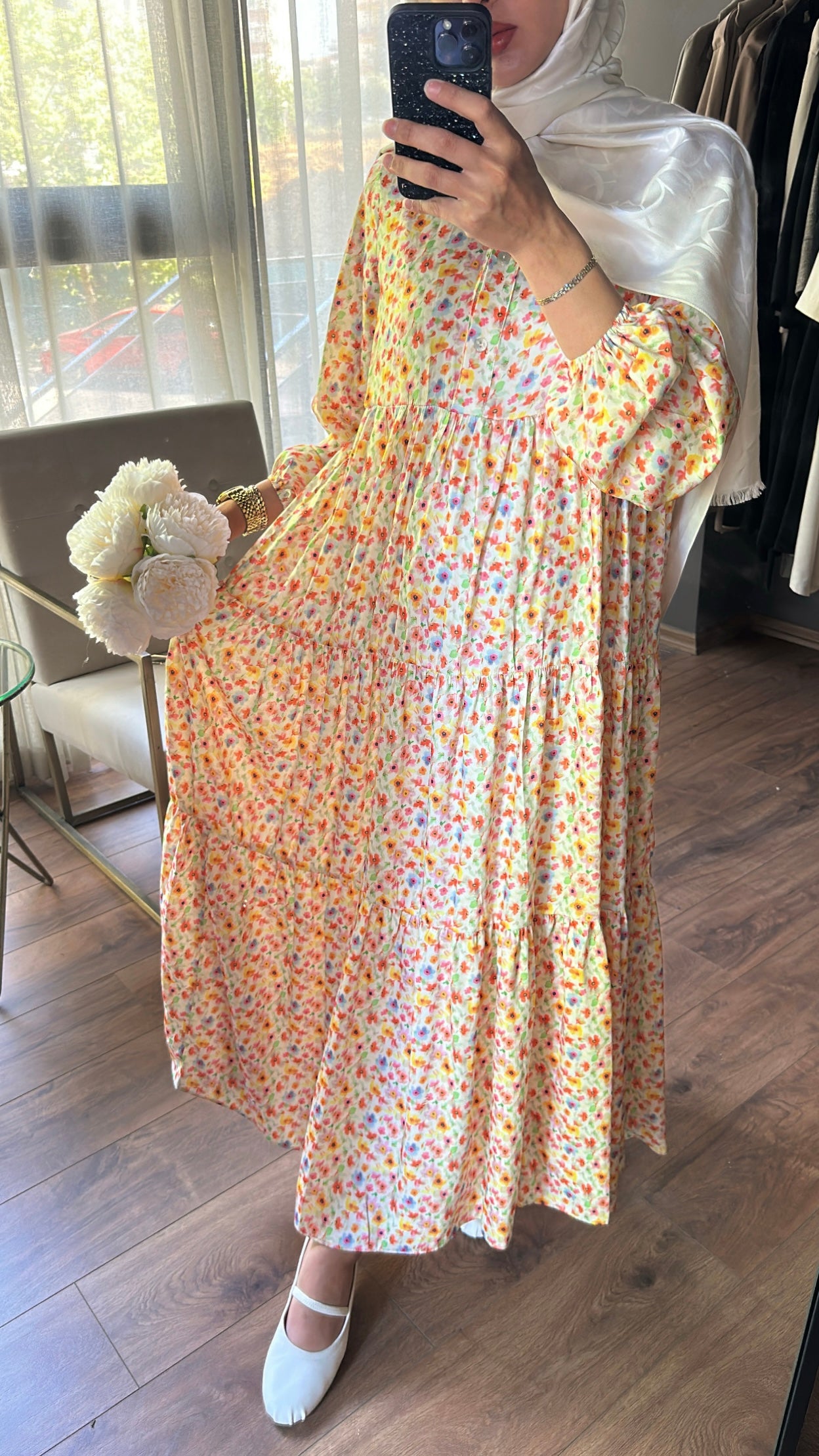 Çiçekli Turuncu Elbise - LIMITED EDITION